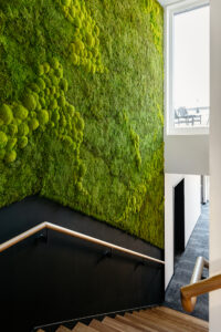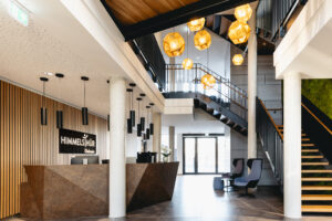 Mit dem Neubau ihrer Hauptverwaltung setzt die Diakonie Himmelsthür ein Zeichen in Richtung Zukunft. Helle Büroräume, flexible Kommunikationszonen, Schulungs-räume, ein multifunktionaler Andachtsraum: das Unternehmensleitbild „Brücken bauen“ ist nicht nur durch die Brücke in der grünen Eingangshalle ein verbindendes Element. Hier gibt es keine Barrieren - hier zählt Gemeinschaft. Fotos: Simona Bednarek